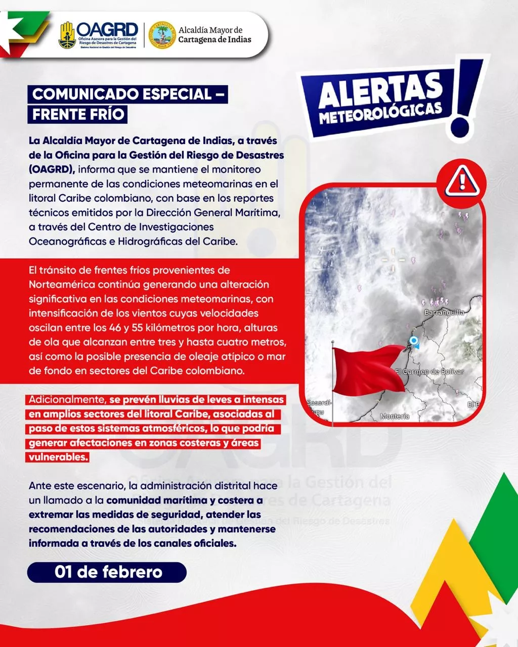 Alcaldía emite alerta por frente frío: la administración distrital hace un llamado a la comunidad marítima y costera a extremar las medidas de seguridad