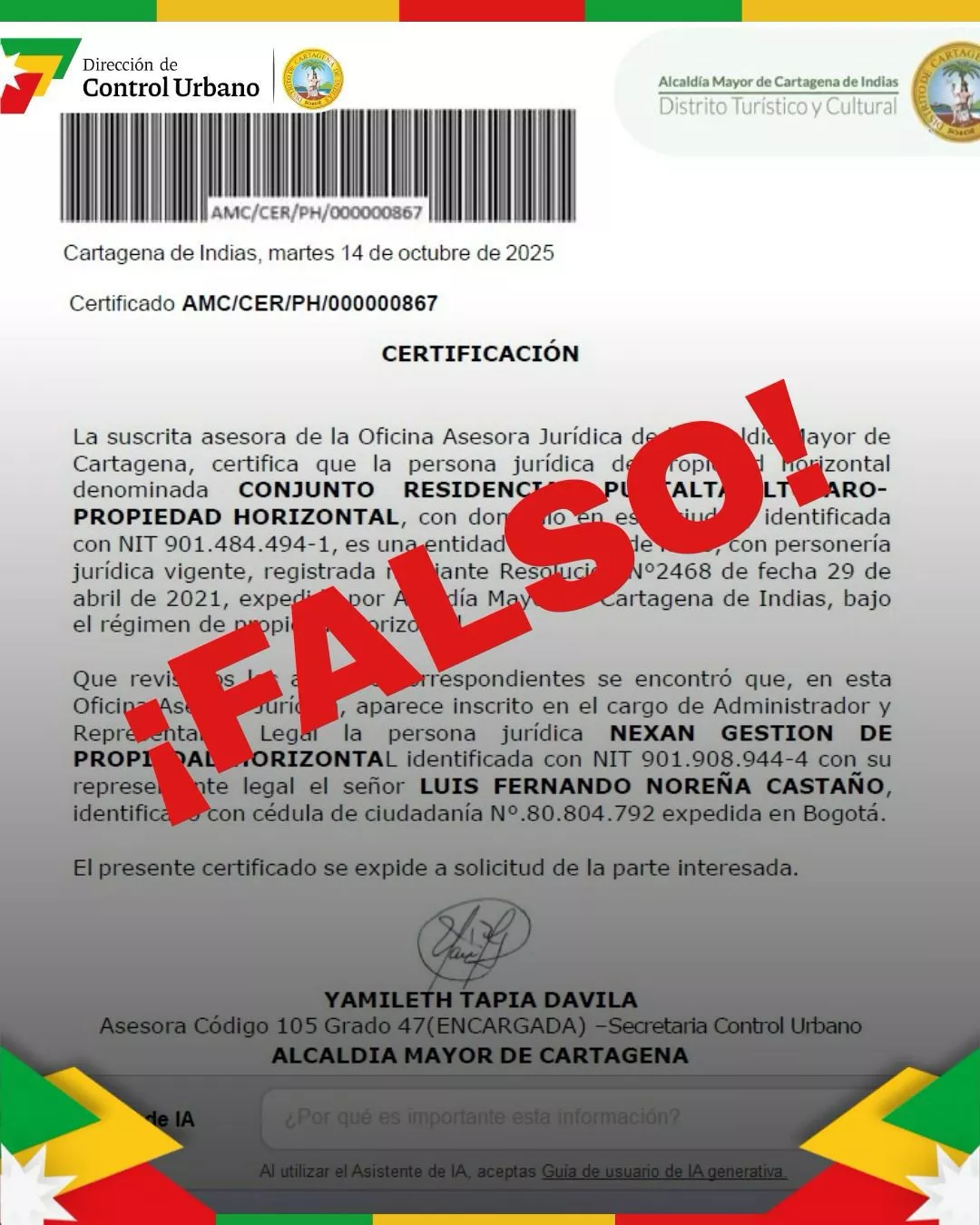 Alerta por falsificación de certificados de propiedades horizontales