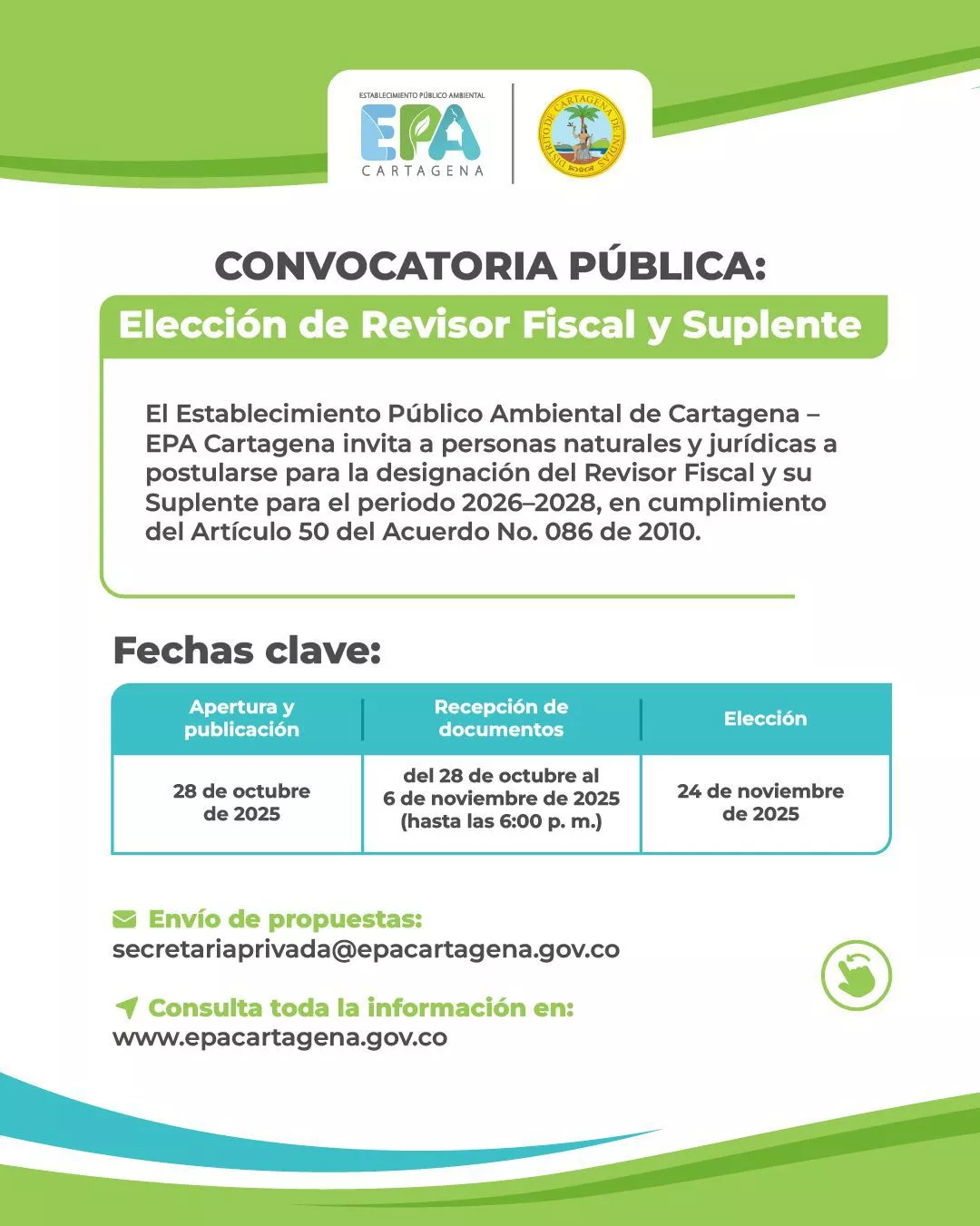 ¡Atención! EPA Cartagena abre convocatoria para elección de revisor fiscal y suplente