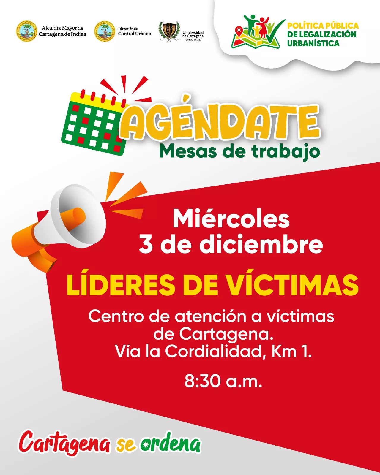 ‼️¡Agéndate Cartagena! Llevamos la Política Pública de Legalización Urbanística a tu comunidad. 📢Conoce aquí las fechas y horas en que estaremos en tu barrio.