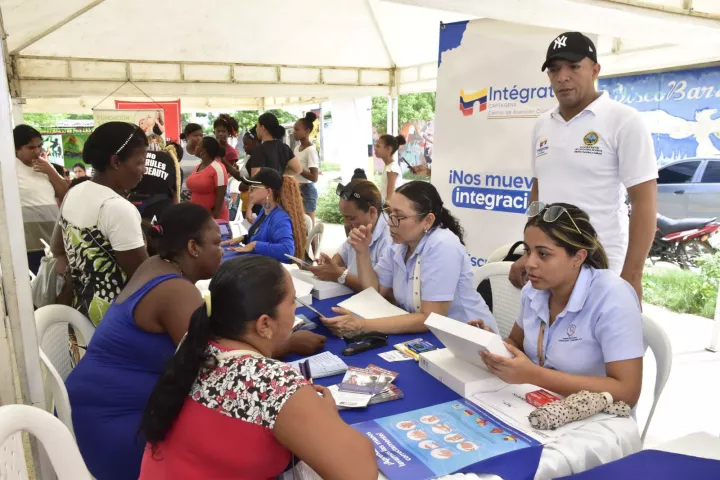 La cancha del Fénix en el barrio Nuevo Paraíso, sector Pantano de Vargas, fue el espacio donde se reunieron más de 20 entidades para beneficiar a los asistentes con servicios de definición de situación militar, créditos bancarios, organizaciones solidarias, empleabilidad y emprendimiento, educación, solución de conflictos, entre otros.