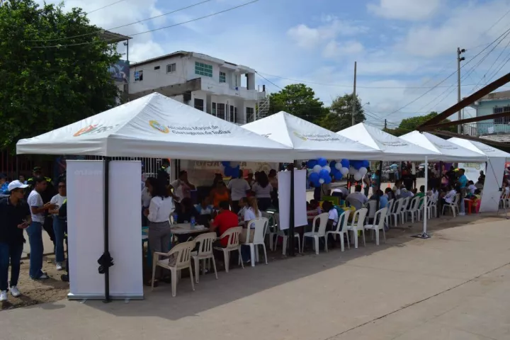 La amplia oferta de servicios estuvo conformada por entidades como Defensoría del Pueblo, Unitecnar, Sisbén, Colpensiones, OAGRD, Mutual Ser, Renta Ciudadana, DADIS, Centro Intégrate, Unidad de Infancia, SENA y otras más, abarcando atenciones en salud, educación, acceso a la justicia, seguridad alimentaria y nutrición, bancarización, dinámica familiar, ingreso y trabajo, entre otros.