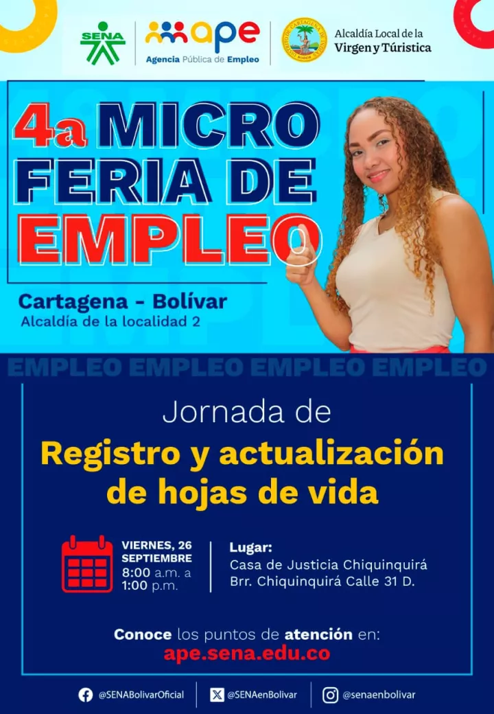 La Alcaldía Local 2, en alianza con el SENA y la Agencia Pública de Empleo, te invita a participar en la 4ª Micro Feria de Empleo y sus actividades previas.
