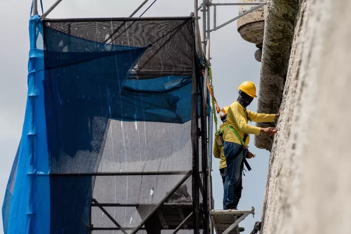 La Escuela Taller Cartagena de Indias retiró la costra negra adherida a las escarpas (muros) con la mano de obra capacitada de sus técnicos egresados.