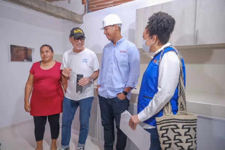 El alcalde de Cartagena, William Dau Chamat, recorrió las viviendas favorecidas junto a Cielo Blanco Flórez, directora del PES- Pedro Romero, quienes fueron testigos de la entrega de estas obras que le transformarán la vida a más de 480 personas que ahora cuentan con mejores espacios.