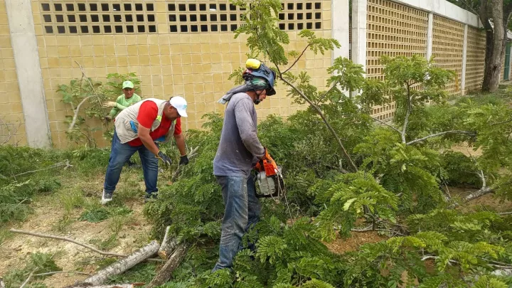 Cartagena de Indias D. T. y C., 22 de agosto de 2024 En acción conjunta, el Establecimiento Público Ambiental (EPA) Cartagena y la Oficina Asesora para la Gestión del Riesgo de Desastres intervinieron a la Institución Educativa Pies Descalzos, en barrio Villa Aranjuez, para eliminar el peligro inminente que representaban varios árboles en riesgo de volcamiento debido a su mal estado fitosanitario.