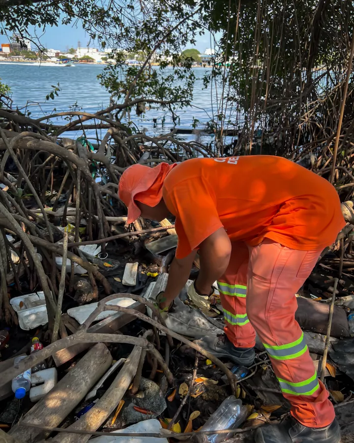 En dos semanas, la Cuadrilla del Alcalde ha retirado 2.700 toneladas de desechos que estaban acumulados en las raíces de los mangles y en el borde de la ciénaga; es un trabajo que se hace de manera manual por la dificultad que representa remover los residuos sin afectar el ecosistema y garantizar la conservación de los mangles.