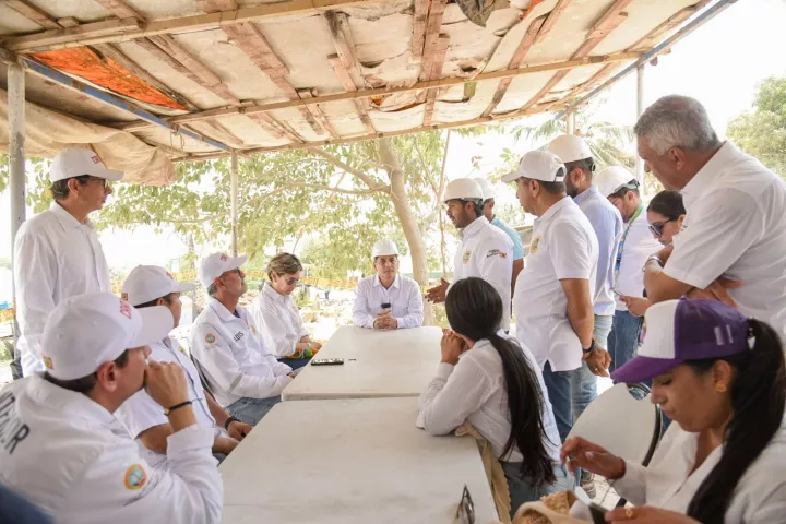 Cartagena de Indias D. T. y C., 10 de marzo de 2024. Al mediodía de este domingo, el alcalde mayor de Cartagena, Dumek Turbay, llegó al Puesto de Mando Unificado (PMU), instalado en el sector La Paz del barrio Cerros de Albornoz, donde Aguas de Cartagena realiza los trabajos de alistamiento del terreno para comenzar la reparación del tubo madre que conduce el agua cruda y conecta con la Estación El Paraguay.