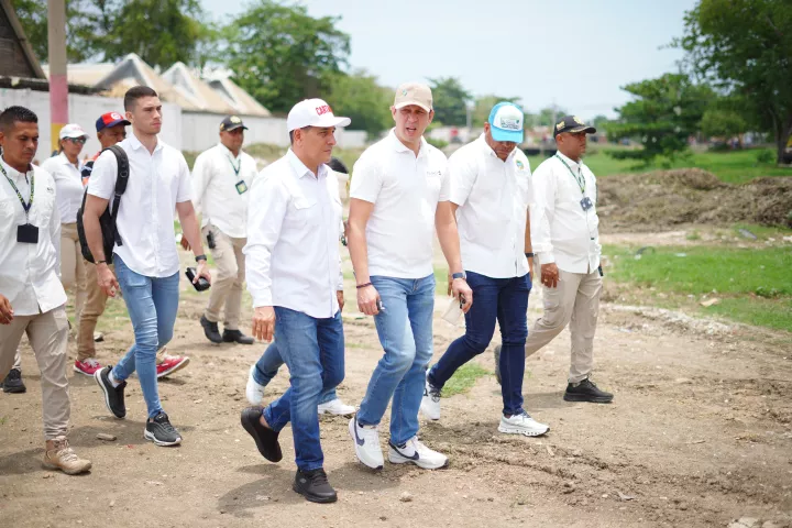 Alcalde de Cartagena, Dumek Turbay, y el presidente de Findeter visitaron a los habitantes de Las Palmeras para conversar sobre obras que se realizan en el canal Matute
