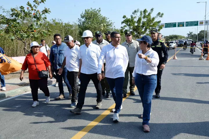Cartagena de Indias D. T. y C., 22 de marzo de 2025. Dumek Turbay Paz, alcalde Mayor de la ciudad, en compañía de la empresa Aguas de Cartagena, habilitaron de manera oficial el tráfico vehicular en la calle 56 de San Francisco, vía que conecta a la Vía Perimetral con la calle principal del barrio en el sector conocido como de ‘Las Letras’.