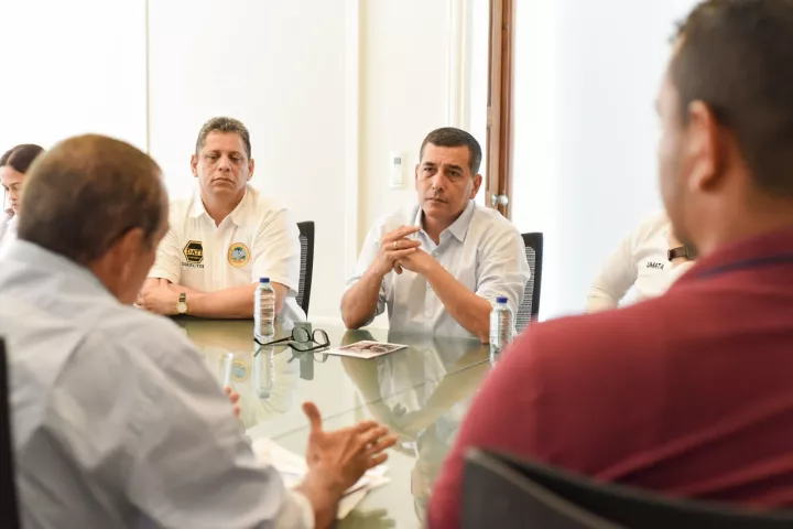 Cartagena de Indias D. T. y C., 12 de enero de 2024. El alcalde mayor de Cartagena, Dumek Turbay Paz, se reunió la tarde de este viernes con representantes de la Asociación Cartagenera de Cocheros , Asocarcoch, con quienes abordó la apuesta del gobierno de ‘Unidos para avanzar’ con miras a la implementación, de manera integral y acorde con el cuidado del medio ambiente, de una nueva alternativa que sustituya los caballos halados por un nuevo modelo concertado.