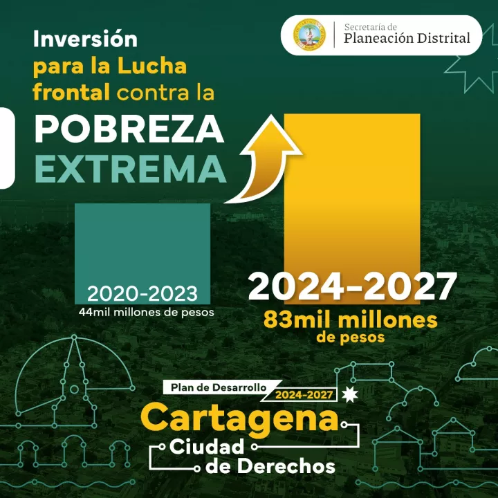 En el cuatrienio pasado, los recursos destinados para superar la pobreza extrema en Cartagena fueron de unos 44 mil millones de pesos, sin embargo, este flagelo aumentó según cifras del DANE, pasando de 10,1% en 2021 a 12,7% en 2022, es decir, hay 132mil personas que viven en pobreza extrema.