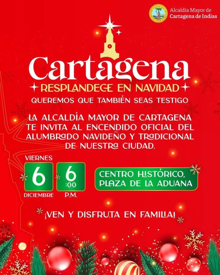 “Los cartageneros quieren que la ciudad se vista de la Navidad tradicional. La Navidad es una época en la que todos queremos terminar el año en paz, en familia, disfrutando del mes más hermoso, y estamos seguros de que la iluminación que hemos preparado será para el disfrute de miles de personas y, en especial, de las familias. Será una gran sorpresa”, dijo el alcalde Turbay Paz.