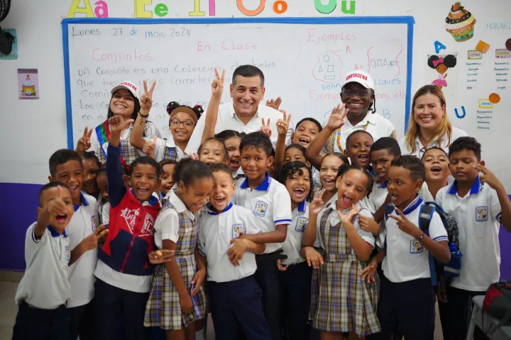 Cartagena de Indias D. T. y C., 28 de mayo de 2024. Cumpliendo con el compromiso adquirido en la posesión de los personeros de las instituciones educativas de Cartagena, el alcalde mayor, Dumek Turbay Paz, visitó en la mañana de este martes la sede principal de la Institución Etnoeducativa e Inclusiva Antonia Santos, donde recorrió las instalaciones y escuchó a la personera, los estudiantes, docentes y su rector. La jornada también contó con la presencia del secretario de Educación distrital, Alberto Martínez, en permanente articulación con el mandatario de los cartageneros.