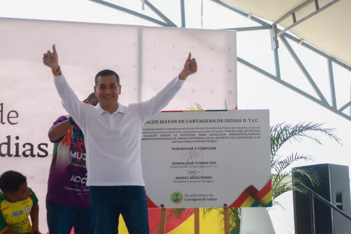 Cartagena de Indias D. T. y C., 8 de marzo de 2025. Desde Policarpa, en la Localidad Industrial y de La Bahía, el alcalde de Cartagena, Dumek Turbay Paz, sancionó el Acuerdo N.° 170, que le delega la potestad para legalizar urbanísticamente los asentamientos humanos de origen informal en la ciudad.