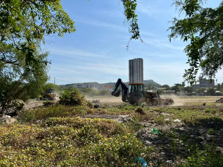 La intervención del lote, con la participación de la cuadrilla de la Alcaldía y la maquinaria necesaria para la recuperación de la zona, se inició con un cerramiento y labores de limpieza para la recolección de escombros y residuos.