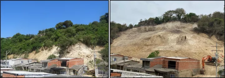 La construcción de estas terrazas es fundamental para poder ir acomodando y retirando el material, con el propósito de recuperar el área actual de las viviendas y, a su vez, encontrar el muro en concreto reforzado existente que servirá como insumo al diseño que se viene ejecutando para dar una alternativa de solución definitiva que coadyuve en la mitigación del movimiento de masas en la ladera del sector noroccidental del cerro.