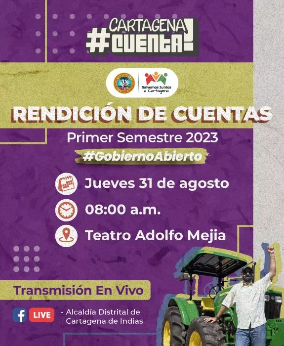 A través del Decreto 0993 del 24 de julio de 2023, el Alcalde de Cartagena convoca a las organizaciones de la sociedad civil y la ciudadanía en general, a la Audiencia Pública de Rendición de Cuentas que se realizará el jueves, 31 de agosto de 2023, desde las 8:00 a.m. hasta la 12:00 m. en las instalaciones del Teatro Adolfo Mejía.