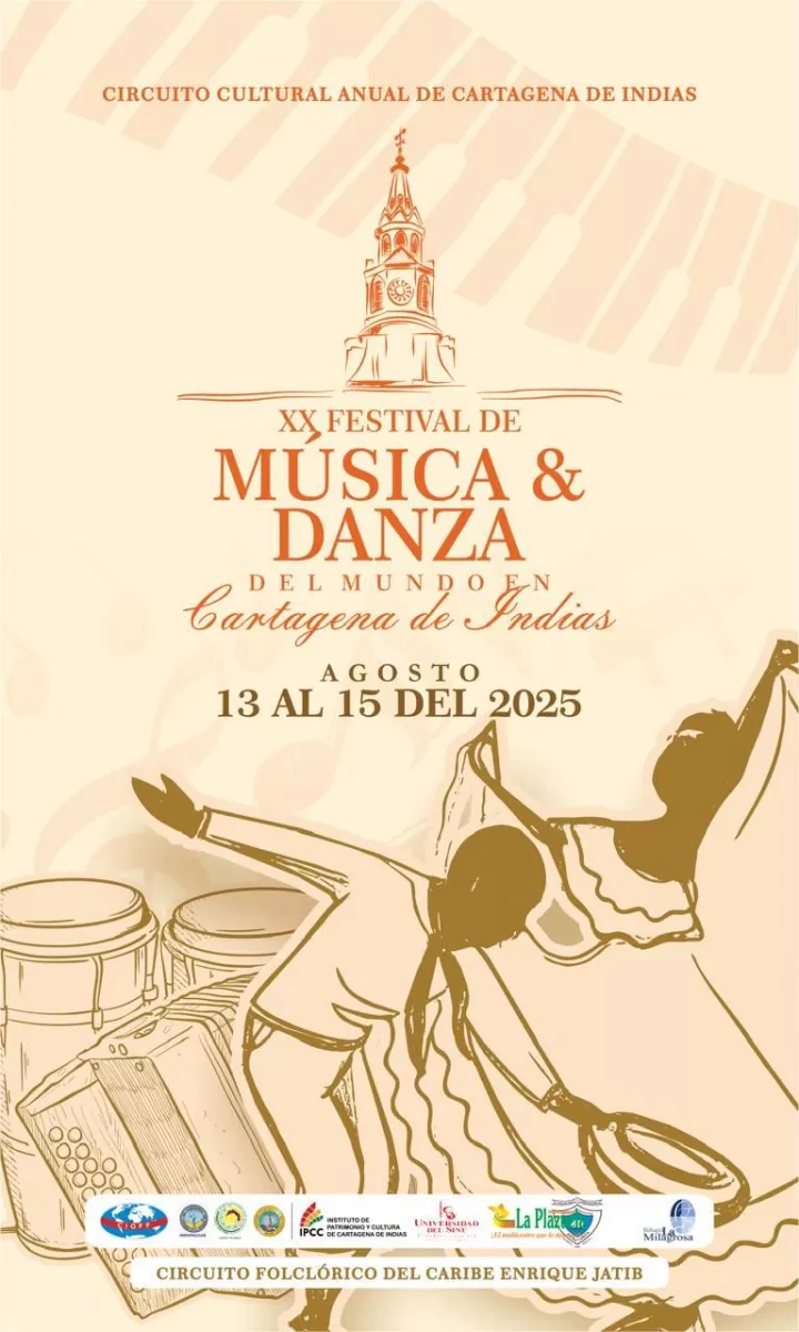 Cartagena de Indias, D. T. y C. – 13 de agosto de 2025: La Alcaldía Mayor de Cartagena de Indias, a través del Instituto de Patrimonio y Cultura de Cartagena (IPCC), invita a toda la ciudadanía a participar en la programación del XX Festival de Música y Danza del Mundo en Cartagena de Indias, ganador de la Convocatoria Circuito Cultural de Cartagena 2025.