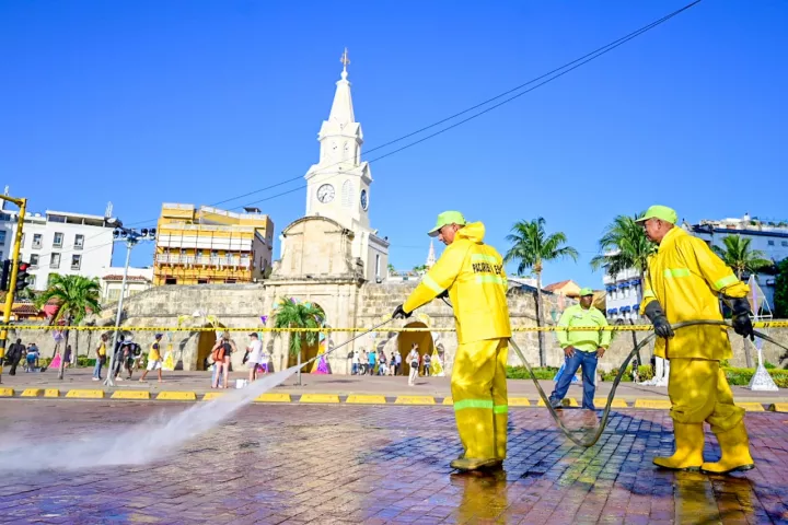 En el marco de la iniciativa “El Centro de Todos” hemos desplegado jornadas de lavado en puntos de interés turístico y alta afluencia en el Centro Histórico. Hoy, en compañía de la Gerencia de Centro Histórico, gracias a las gestiones de la Secretaría General, estamos realizando un lavado profundo de toda el área del Muelle de los Pegasos y la Plaza Cervantes, acompañado de una intervención pedagógica, invitando a la ciudadanía a depositar los desechos en las cestas públicas para que podamos disfrutar de una ciudad libre de residuos en esta temporada. Con esta articulación seguimos demostrando que estamos comprometidos con la construcción de una Cartagena ambientalmente amigable", afirmó Óscar Osorio, gerente de Gestión Social de Pacaribe.