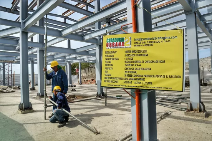 El centro de salud de Bocachica se reanuda con un avance del 30%, se encuentra en estructura metálica y, actualmente, se realizan mantenimientos y limpiezas correspondientes del área a intervenir.