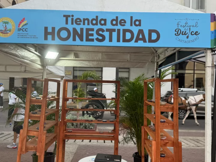 Cartagena D. T. y C., 14 de abril de 2025. En la Plaza de La Aduana se encuentra la ‘Tienda de la Honestidad’, una iniciativa innovadora de la Alcaldía de Cartagena, a través del Instituto de Patrimonio y Cultura de Cartagena (IPCC), que busca fortalecer los valores de transparencia y responsabilidad colectiva de cartageneros y visitantes que se acercan a disfrutar del XV Festival del Dulce y la Comida Típica Cartagenera.