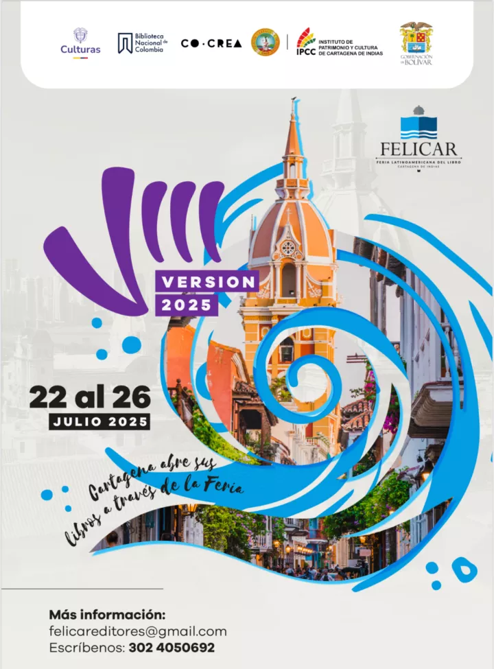 Cartagena de Indias, D. T. y C.- 11 de julio de 2025: La Alcaldía Mayor de Cartagena, a través del Instituto de Patrimonio y Cultura de Cartagena (IPCC), invita a toda la ciudadanía, estudiantes, docentes, colectivos culturales, instituciones educativas, entidades públicas y privadas, turistas y amantes de la literatura, a disfrutar de la VIII Feria Latinoamericana del Libro Cartagena de Indias -FELICAR 2025, que se realizará del 22 al 26 de julio en el Palacio de la Proclamación.