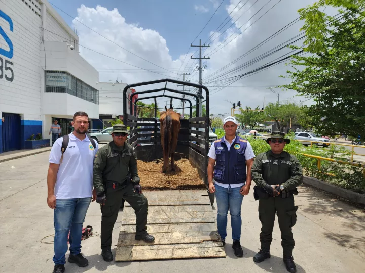Alcaldía Mayor de Cartagena y Policía Ambiental realizaron la aprehensión preventiva a equino, tras denuncia ciudadana.