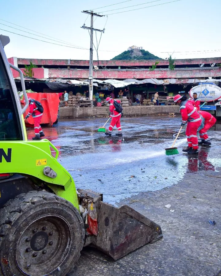 Cartagena de Indias D. T. y C., 15 de septiembre de 2024. En procura de un ambiente sano en el mercado de Bazurto, la Alcaldía Mayor de Cartagena, a través de la Secretaría General, con el apoyo de Veolia y Aguas de Cartagena, realizaron este fin de semana, una jornada de limpieza profunda y desinfección en el sector La Rampa, uno de los más estratégicos de la central de abastos por ser donde llegan diariamente los camiones a descargar las mercancías que vienen desde diferentes ciudades del país.