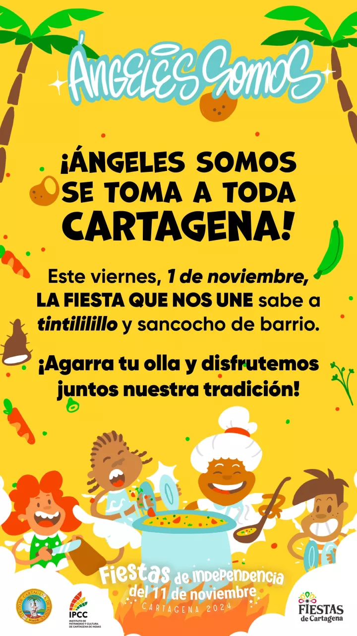Cartagena de Indias D. T. y C., 31 de octubre de 2024. El retumbar de tapas, ollas, calderos y palos, en el marco de la tradicional celebración de ‘Ángeles Somos’, se tomará este viernes, 1 de noviembre, todos los barrios de Cartagena. Esto, como parte de una gran apuesta de la Alcaldía Mayor de Cartagena que, en la consolidación de ‘La Fiesta que nos Une’, rinde honores a una de sus muestras culturales más representativas.