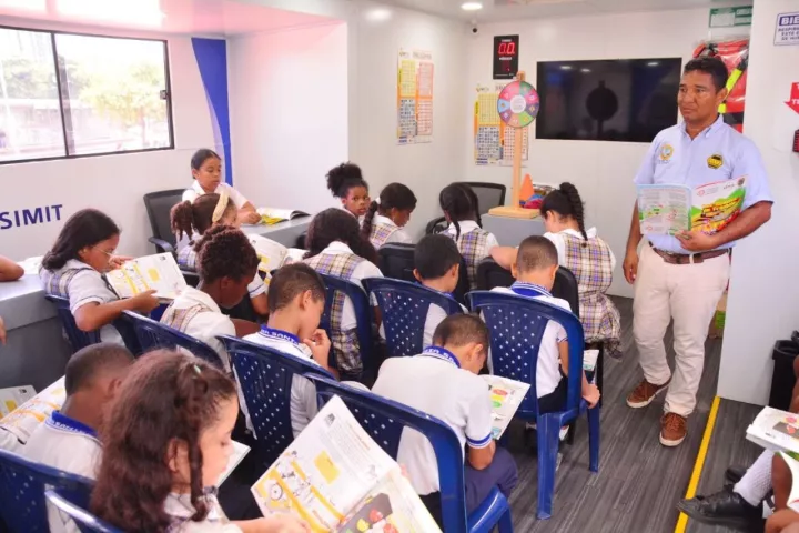 Con apoyo de la Unidad Móvil del Simit, DATT Cartagena promueve seguridad vial con estudiantes de IE Antonia Santos