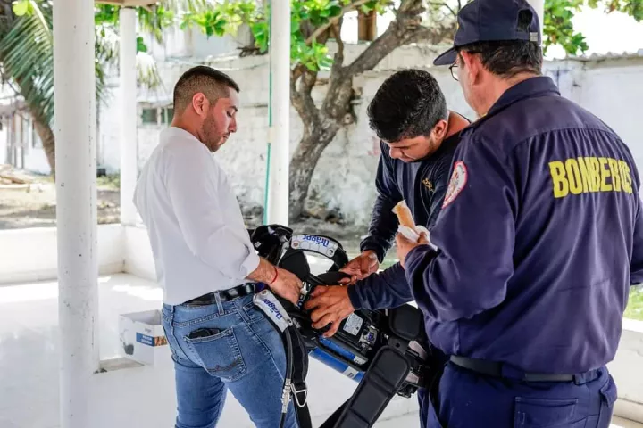 Cartagena de Indias D. T. y C; marzo 24 de 2023. Ayer, jueves 24 de marzo, inició la jornada de capacitación y configuración de los equipos de respiración autónoma, una herramienta indispensable para las operaciones de rescate que les permitirá a los bomberos respirar en zonas donde no haya suficiente oxígeno y se expongan a altas temperaturas.