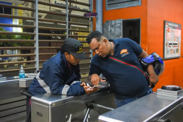 En cada estación, se habilitará un torniquete único para entrada y otro para salida. En el torniquete de entrada, el usuario entregará su tiquete al guarda de seguridad, quien se quedará con la colilla, mientras que el resto del tiquete se devolverá al usuario.