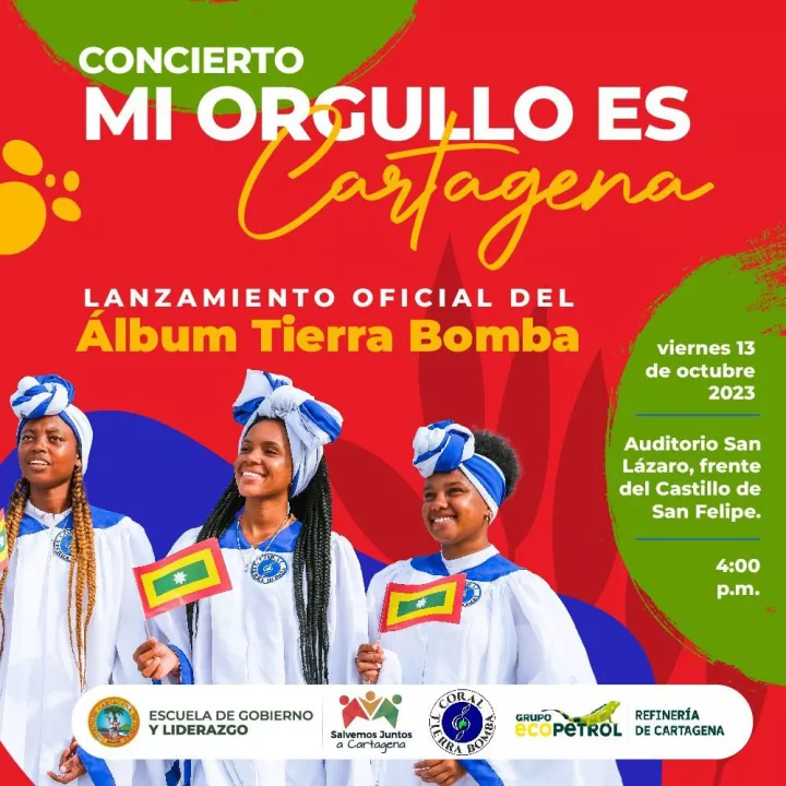 La Coral Tierra Bomba hará el lanzamiento oficial del álbum musical denominado ‘Tierra Bomba’, de la mano de la Escuela de Gobierno de la Alcaldía de Cartagena junto a Ecopetrol. El álbum contará con siete (7) canciones dedicadas a la ciudad heroica y la zona insular de Cartagena.