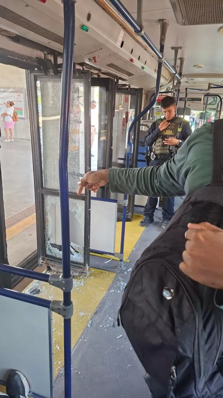 Dos sujetos, un trabajador y un estudiante universitario, atacaron y destruyeron los vidrios de dos buses de TransCaribe en el Patio Portal.