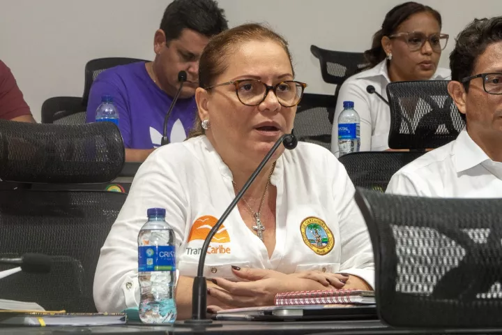 Cartagena de Indias, 11 de mayo de 2024. La gerente de Transcaribe, Ercilia Barrios Flórez, sustentó ante el Concejo Distrital los indicadores, las metas y los proyectos relacionados con el sistema dentro del Plan de Desarrollo “Cartagena ciudad de derechos” 2024-2027.