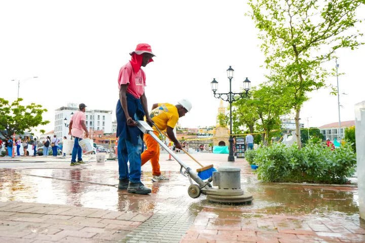 En ese epicentro diario de cartageneros y visitantes se llevan a cabo labores de mantenimiento y reparación general de los elementos representativos del Camellón de los Mártires y el monumento de Miguel de Cervantes, a los que se suma un muelle de Los Pegasos completamente recuperado, ya entregado el pasado 29 de julio por el alcalde Dumek Turbay Paz.