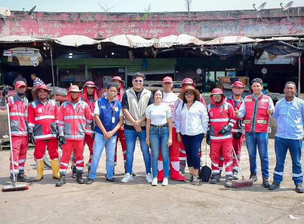 Cartagena de Indias D. T. y C., 18 de abril de 2024. Diez toneladas de residuos sólidos fueron recogidas este jueves en el mercado de Bazurto durante una nueva jornada de limpieza realizada en esta plaza de abastecimiento.