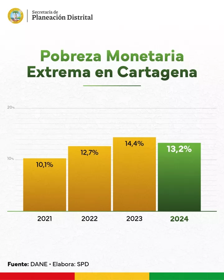 Al respecto, el alcalde Dumek Turbay destacó: “En 2024 logramos frenar la tendencia al alza de la pobreza extrema, un resultado que nos impulsa a seguir trabajando con determinación para que cada cartagenero y cartagenera tenga acceso a mejores oportunidades y condiciones de vida”.