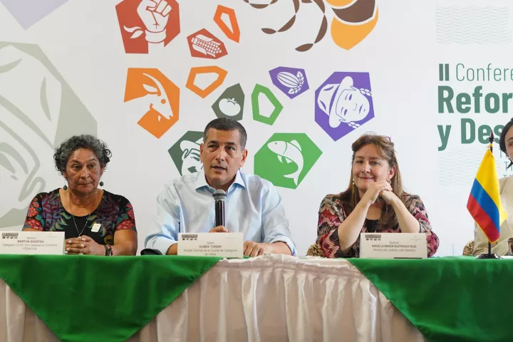 Durante la rueda de prensa, representantes de entidades nacionales e internacionales como el Ministerio de Justicia, la FAO, la Federación Nacional de Cooperativas Agrarias, la Agencia Nacional de Tierras, organizaciones campesinas y el Movimiento Campesino Internacional reafirmaron el valor de esta conferencia para acelerar la transformación de los sistemas agroalimentarios y fortalecer la gobernanza sostenible de la tierra.