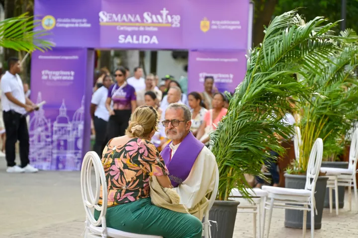 Cartagena de Indias D. T. y C., 17 de abril de 2025. En la Plaza de la Proclamación todo estuvo dispuesto desde temprano para vivir un importante espacio de perdón y misericordia. La confesatón fue el momento donde los fieles pudieron tener un encuentro intimo con Dios a través del sacramento de la reconciliación. En el espacio participaron más de 500 personas, con más de 30 sacerdotes de la Arquidiócesis de Cartagena dispuestos a escuchar confesiones en tres idiomas, en una jornada que se extendió hasta la medianoche.