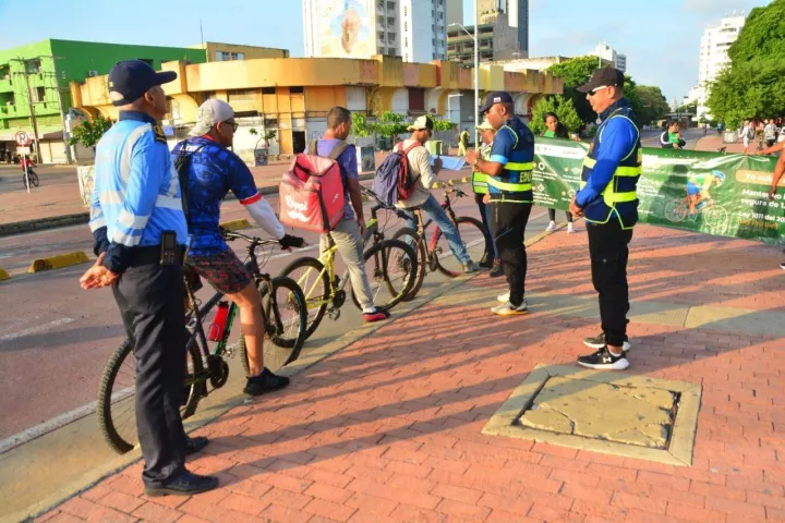 La agenda inició a primera hora con una campaña pedagógica en el sector de la India Catalina, para promover el uso de la bicicleta y que los ciclistas utilicen los elementos de seguridad vial.