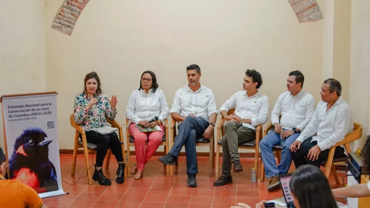 Luego de la presentación de la Estrategia Nacional para la Conservación de las Aves de Colombia-ENCA 2030, se llevó a cabo el panel “Conectando con el mundo de las aves: Una apuesta para la conservación en territorio”, en el cual participaron Arelis Mendoza, subdirectora de Investigación y Educación del EPA Cartagena, Fernando Rivera Linares, historiador y guía de turismo, Luis Zúñiga Caviedes, operador turístico, Javier Martin, Líder Senior de Grupo Argos y Hugo Vides de la Oficina de Cooperación Internacional de Cartagena. Los panelistas aportaron sus experiencias y conocimiento en la materia, especialmente sobre los desafíos para consolidar la conservación y el turismo de aves, así como las oportunidades que estás representan, a través de testimonios e historias inspiradoras.