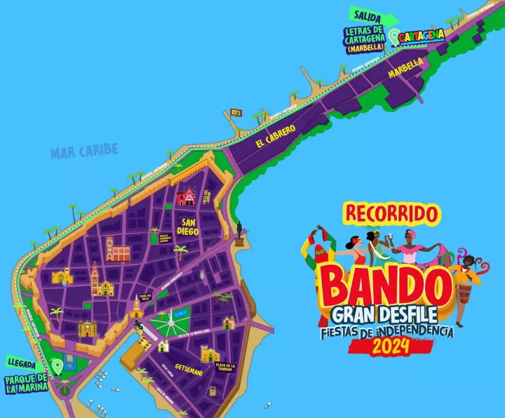 Uno de los más esperados es el Bando o Gran Desfile de Fiestas de Independencia del 11 de Noviembre, que se realizará este jueves 7 de noviembre. El evento se inicia a las 12:45 del mediodía con la Lectura del Bando por parte del alcalde mayor de Cartagena, Dumek Turbay, en el letrero monumental de Cartagena, ubicado en el barrio Marbella. Desde ese punto, a partir de la 1 de la tarde, arrancará el multitudinario desfile.
