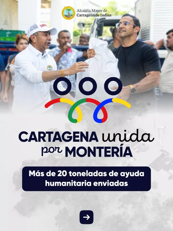 Consolidando el apoyo, desde el inicio de la semana del 9 de febrero, el Distrito activó oficialmente la campaña solidaria, #CartagenaUnidaPorMontería, que convocó a los ciudadanos de Cartagena a donar alimentos, ropa, concentrado para animales y artículos de primera necesidad.