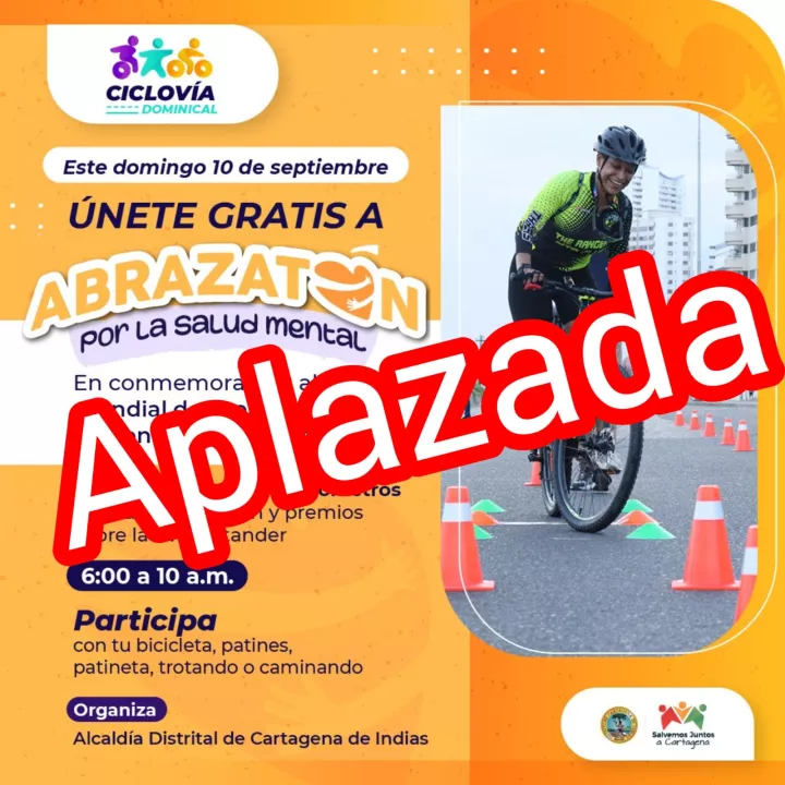 Cartagena de Indias D.T y C; 10 de septiembre de 2023. La Alcaldía de Cartagena informa a la ciudadanía que debido a las condiciones climáticas actuales, la Ciclovía Dominical en la avenida Santander se APLAZA.