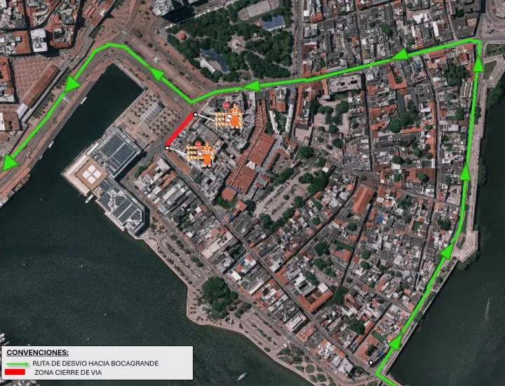 Los vehículos que desde el Puente Román se dirijan hacia el barrio Bocagrande deberán tomar la avenida del Pedregal, hacia la Calle de la Medialuna, para dirigirse hacia a avenida Blas de Leso.