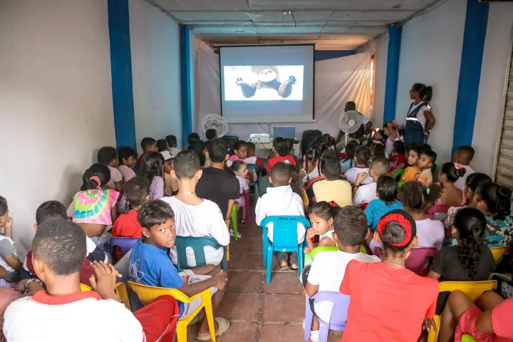 A través del 'Cine Combitas', realizado en el barrio Nuevo Paraíso, más de 100 niños y niñas de la comunidad disfrutaron de una tarde llena de películas, juegos, música y actividades recreativas, en un ambiente lleno de risas y felicidad.