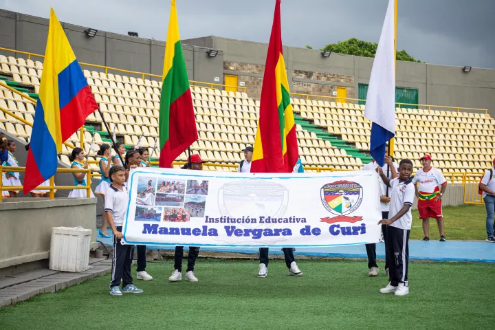 El desfile inaugural fue encabezado por Geiner Moreno Chiquillo, destacado deportista de alto rendimiento que representó dignamente a Colombia en los Juegos Olímpicos de Paris 2024, y quien desde su condición de estudiante en el Colegio Jorge Artel de la Vía Perimetral, localidad 2 de la Virgen y Turística, perfiló sus potencialidades en el aatletismo.