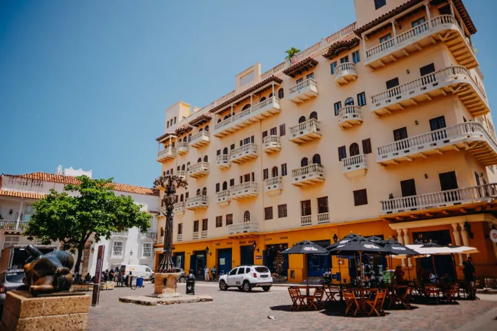 Cartagena de indias D. T. y C. 24 de enero de 2024. La concurrida Plaza Santo Domingo, en el Centro Histórico, cambia de sistema de iluminación. Con la renovación de 12 lámparas, que hoy cuentan con una tecnología obsoleta, y la instalación de dos nuevas, el sitio contará con una configuración lumínica Led en su alumbrado público.